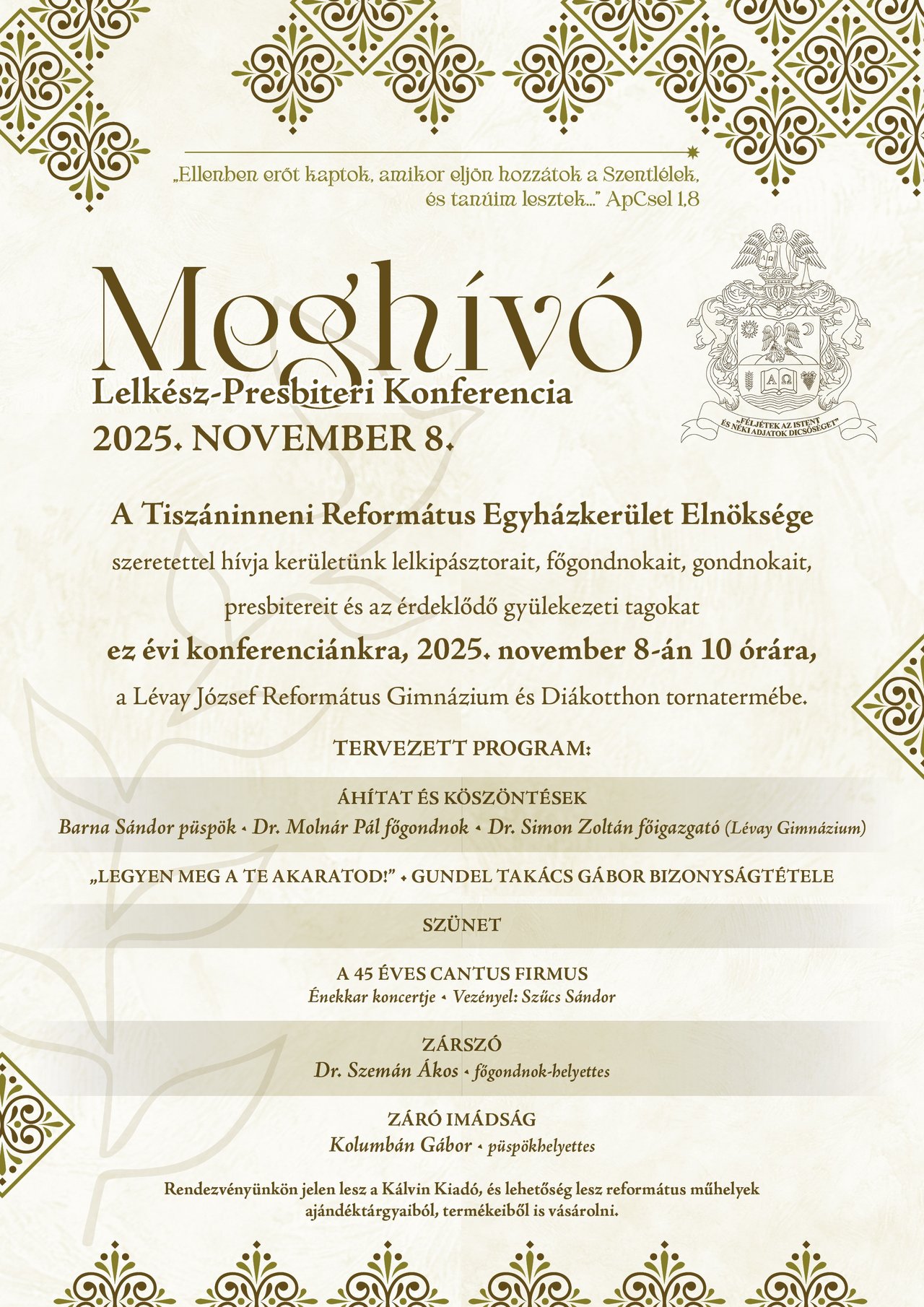 A Kálvin Kiadó és a Magyar Bibliatársulat kedvezményes könyvvásárt tart 2025. november 8-án, szombaton 10 órától a miskolci Lévay József Református Gimnázium és Diákotthon tornatermében megrendezésre kerülő Lelkész-Presbiteri Konferencián.