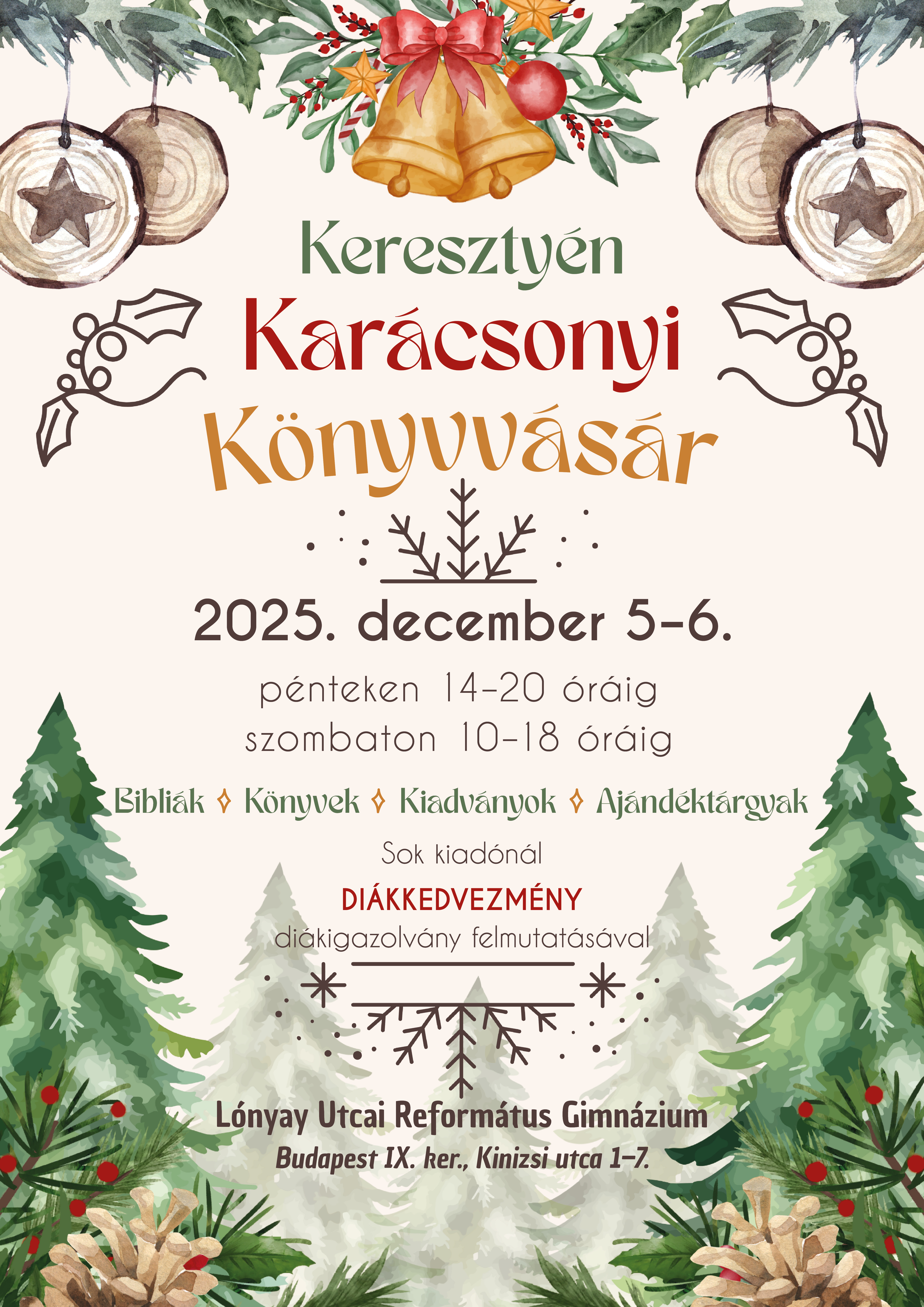 A hagyományos Keresztyén Karácsonyi Könyvvásárt december 05-én és 06-án, pénteken és szombaton rendezik meg a Lónyay Utcai Református Gimnázium tornatermében