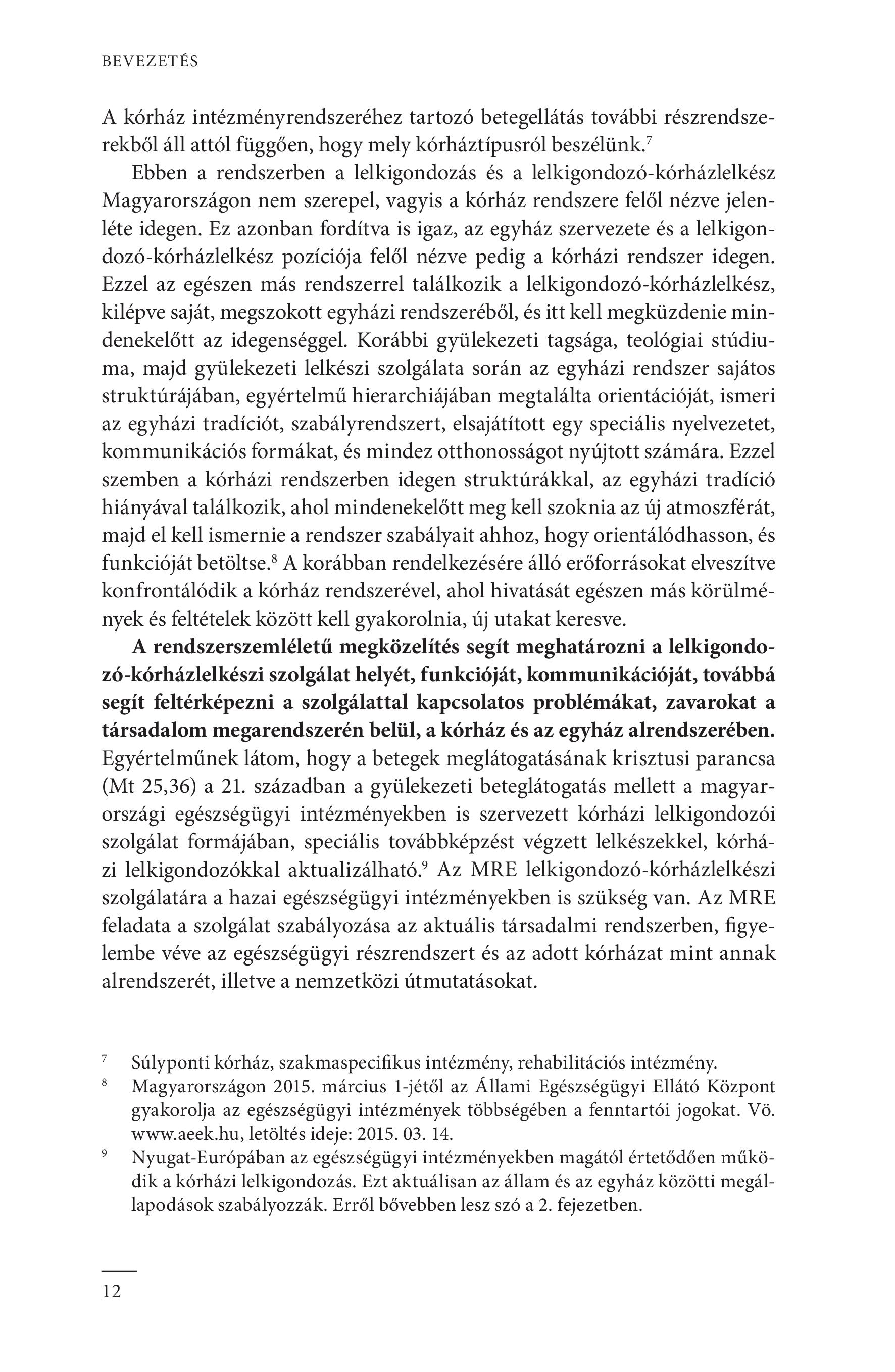 A lelkigondozó-kórházlelkész része a kórház intézményrendszerének, s ezzel párhuzamosan az egyházénak is. Ez az adottság nehézségeket, kihívásokat és lehetőségeket is rejt magában, de mindenekelőtt tudatosságot és átgondoltságot igényel mind a rendszerek működtetői, mind a lelkipásztor részéről. Michna Krisztina könyve bemutatja az egyházi és kórházi rendszerek határán szolgáló lelkigondozó-kórházlelkészek helyzetét, lehetőségeit és feladatait, feltérképezi a kórházlelkészi szolgálat múltját, és összefoglalja külföldi egyházak tapasztalatait. A lelkigondozás helykeresésének leírásához a rendszerelméletet használja gondolati keretként, amely segít komplex módon szemlélni a kórházi lelkigondozást, és kifejteni a részek együttműködésének lehetőségét és jelentőségét, valamint a rendszer és környezetének kapcsolatát. A szerző a helyzetelemzés után modelleket is kínál a rendszerek határán elhelyezkedő kórházlelkészi szolgálat önértelmezésére.