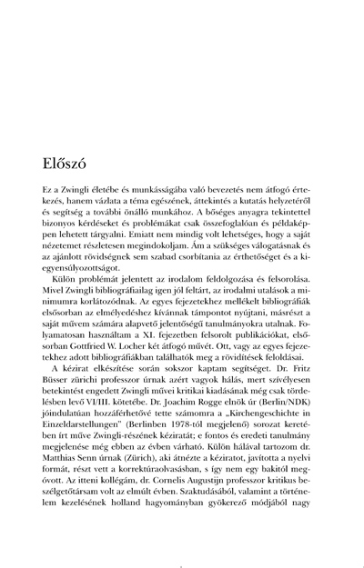 Huldrych Zwingli (1484†) a református protestantizmus „alapítóinak” egyike. Ulrich Gäbler egyháztörténész könyve Zwingli személyét, gondolkodását és életművét újszerű módon tárja az olvasó elé, a problémás pontokat is kiemelő bevezetést adva Zwingli teológiájába, a reformátor személyiségét és tevékenységét korának politikai, társadalmi és egyházi fejlődésének összefüggéseiben ábrázolva. A könyv utószavában Martin Sallmann egyháztörténész a könyv első megjelenése (1983) utáni szakirodalommal egészíti ki ezt a Zwingliről szóló alapművet.