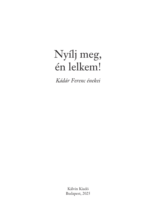Kádár Ferenc lelkipásztor, énekszövegszerző, az elmúlt évtizedekben született saját énekterméséből válogatott össze egy kötetnyit. Énekeinek indítéka és célja a hálaadás, a fohászkodás és az Úr nagy tetteinek hirdetése. Buzdítson sokakat éneklésre ez az gyűjtemény!