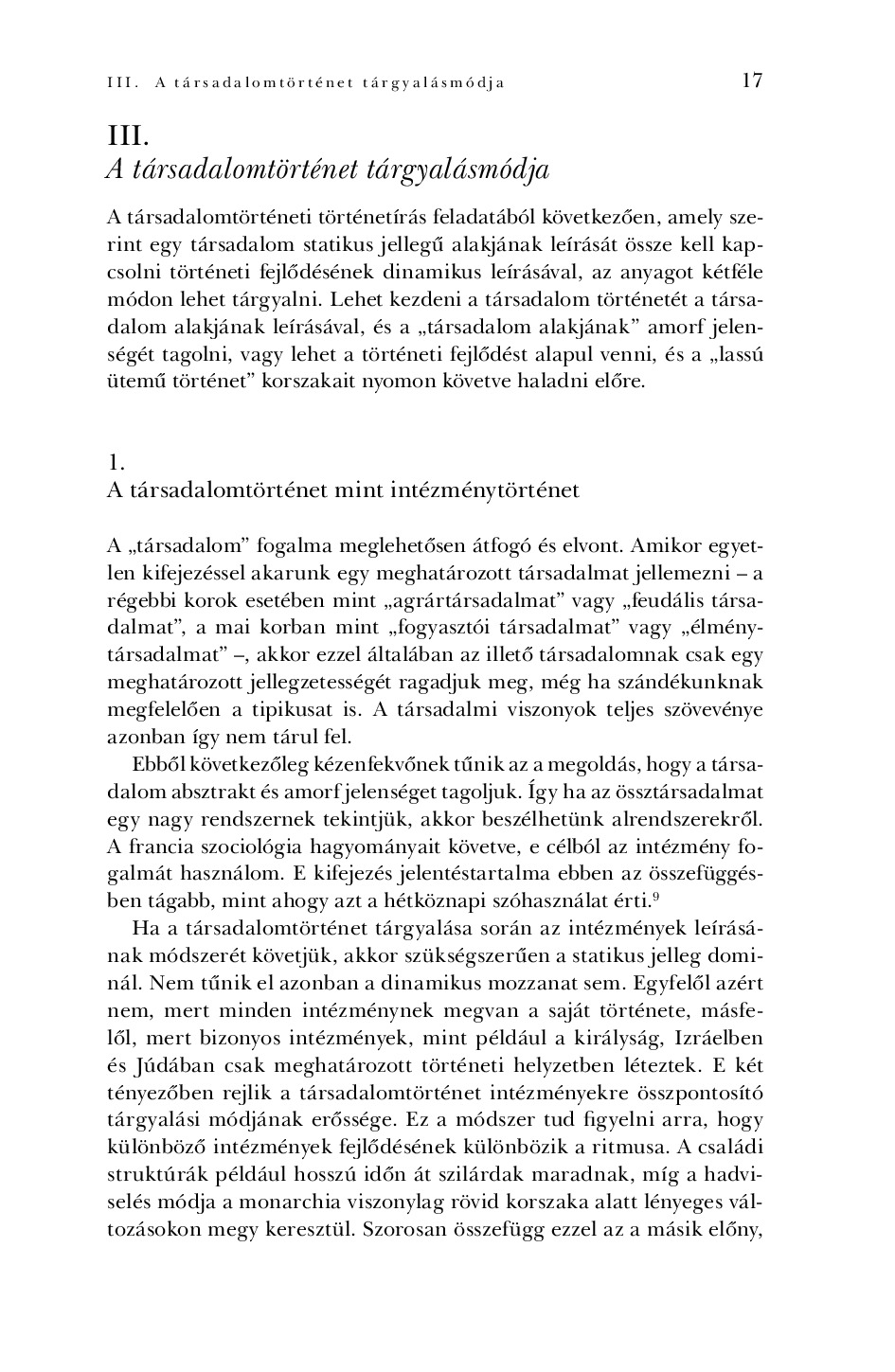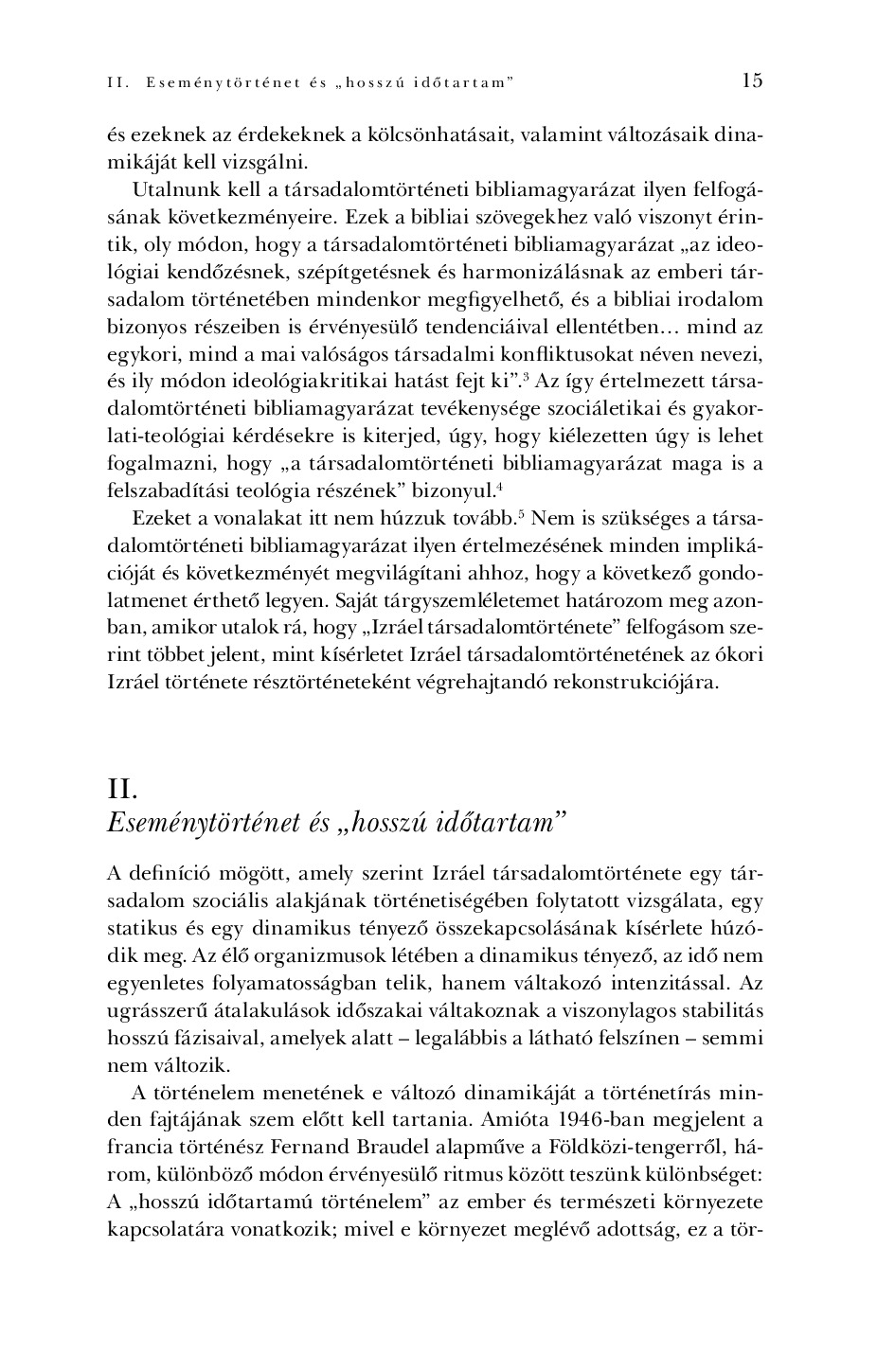 Ugyanakkor Kessler e társadalmi intézményeket Izrael történetének fontosabb korszakaira lebontva elemzi, minden korszak előtt röviden bemutatva annak „esemény-történetét”. Tájékozottsága ezen a téren is imponáló: a bibliai régészet eredményeit ismeri, a biblián kívüli írott forrásokra rendre kitér, ám a bibliai beszámolók terén is alapos elemző munkát végez. Mivel a társadalmi struktúrák viszonylag lassan változnak, Kessler jogosan enged meg magának „egy bizonyos mértékű kontrollált bizonytalanságot az események és források datálásában.” (16. o.) A könyv így nem terheli az olvasót a bibliai források szerzőségével kapcsolatos irodalomkritikai rekonstrukciókkal, mint ahogy néhány vitatott történelmi dátummal kapcsolatban sem kell a pozícióját hosszasan bizonygatnia. Mindez sokat használ a mű olvashatóságának, és megakadályozza, hogy az olvasó elvesszen a részletkérdések között.